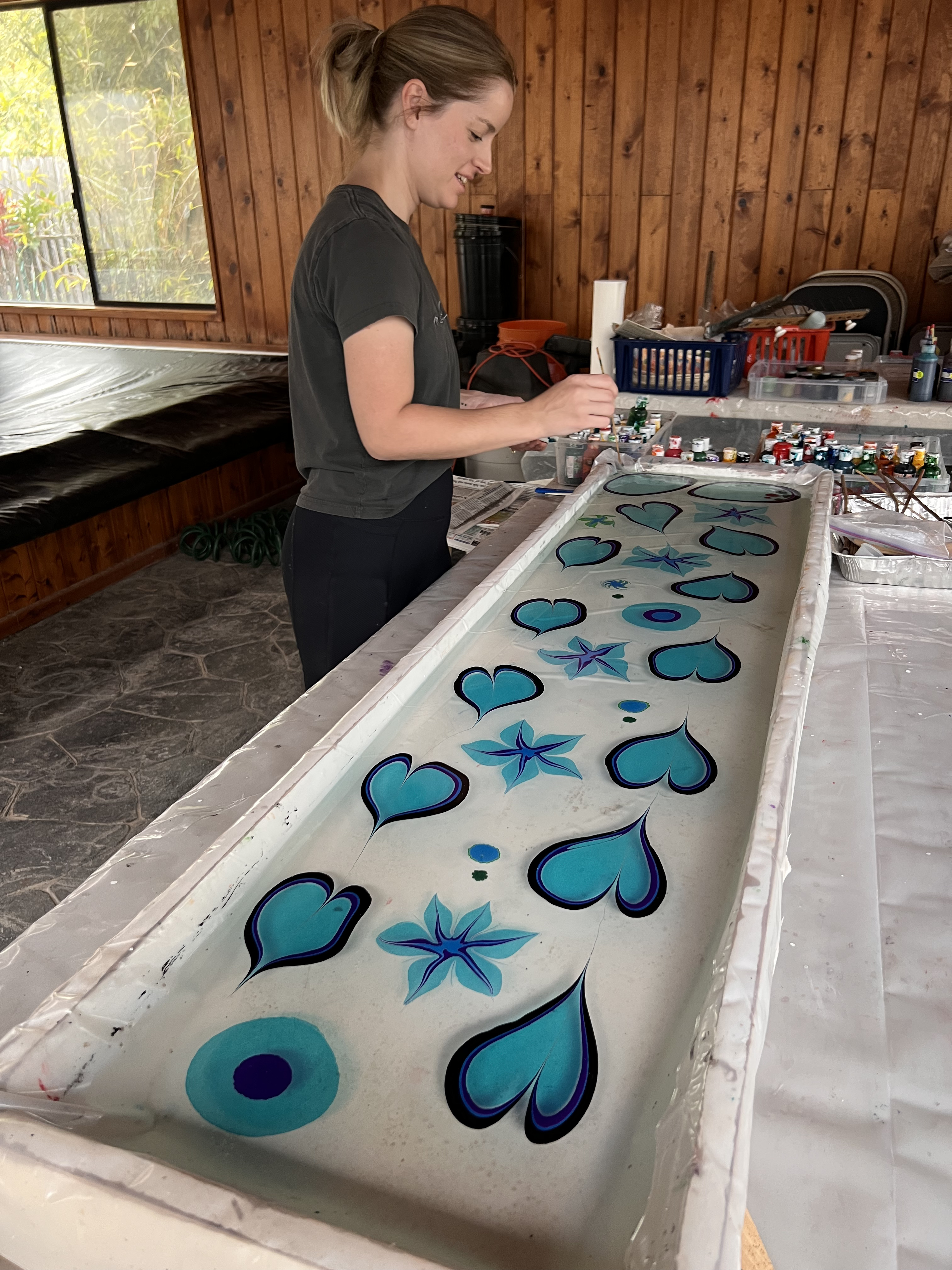 “I have taken numerous workshops taught by Lynda, from tapestry weaving to batik and marbling on silk and other surfaces. To see her art in person is to understand the depth of her knowledge. She’s humble, so you might have to root around her art studio or ask her to show you some of her work. She has earned the title of internationally renown tapestry artist. In addition, she’s amazing with batik and marbling and creating mixed media 3d sculptures from things found in nature. She has an enormous bamboo garden and you frequently will find bamboo in her creations. And the stories from her life…I’m surprised Hollywood hasn’t found her. She’s lived on a boat in the waters off Africa, run her own art gallery in Aspen, Taos and Cape Town, South Africa, has created huge, fabulous art installations in corporate and medical centers throughout the world. And for me, personally, I love that she loves animals. She even weaves with her beloved dogs’ hair! Amazing person, phenomenally talented! It’s also worth noting that Lynda has taught children all aspects of art for over 20 years now. As a bonus for adults: ask her about her sip and create workshops!” Debra Mason 08/09/2023