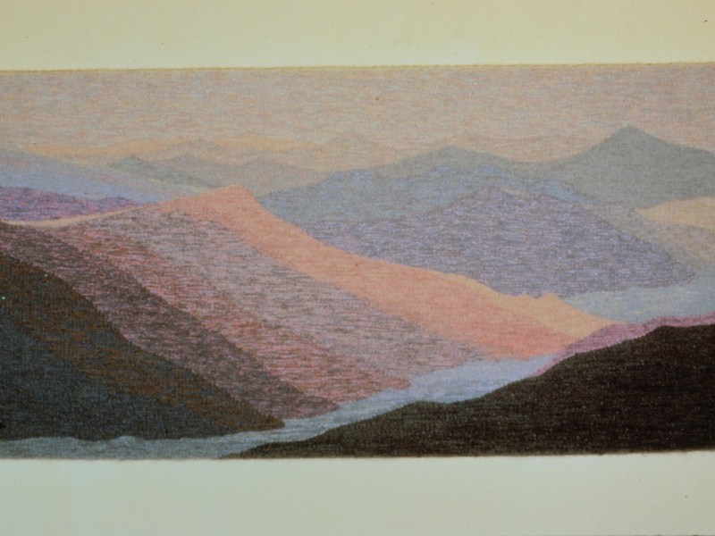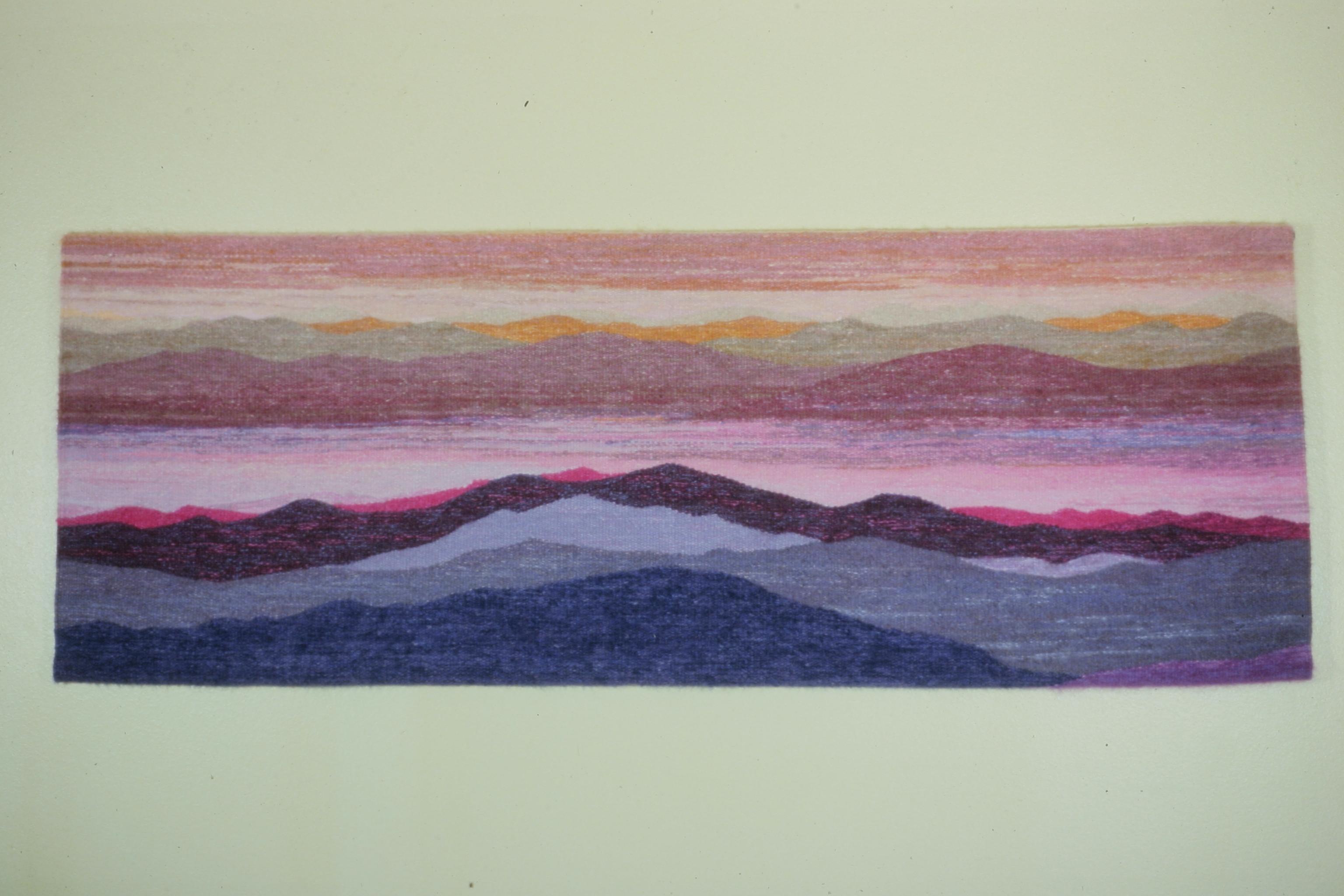 Tapestry Commission for Fuji Bank, San Franscisco Size: 60″W x 30″H Materials: Hand dyed wool and mohair Share this: Click to share on X (Opens in new window) X Click to share on Facebook (Opens in new window) Facebook Like Loading...