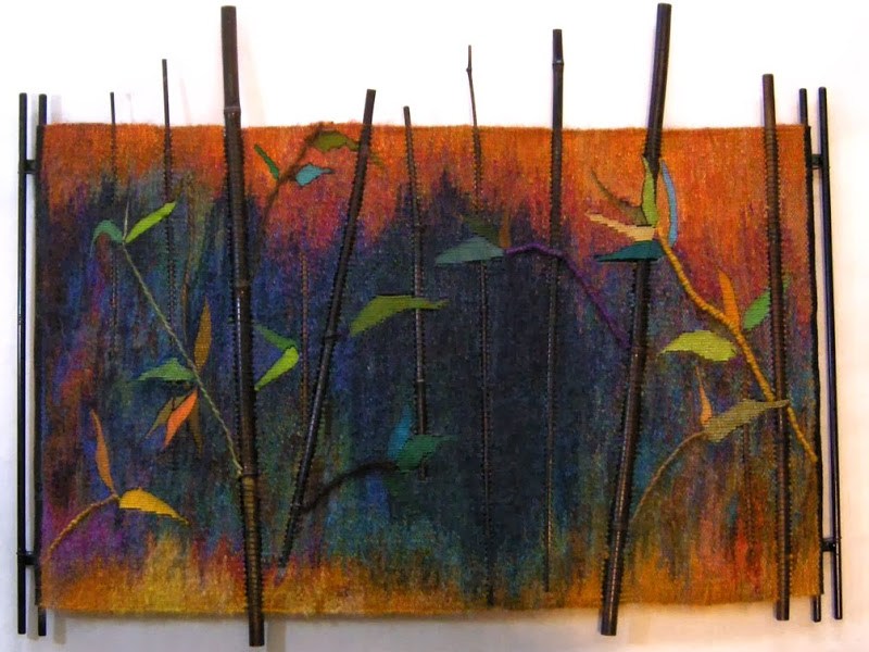 Bamboo grove in fall Commissions, Sculptural Art, Tapestry Commission North Carolina Materials: Hand dyed wool and mohair, hand dyed bamboo fiber, black bamboo from the garden, welded metal frame. Like Loading...