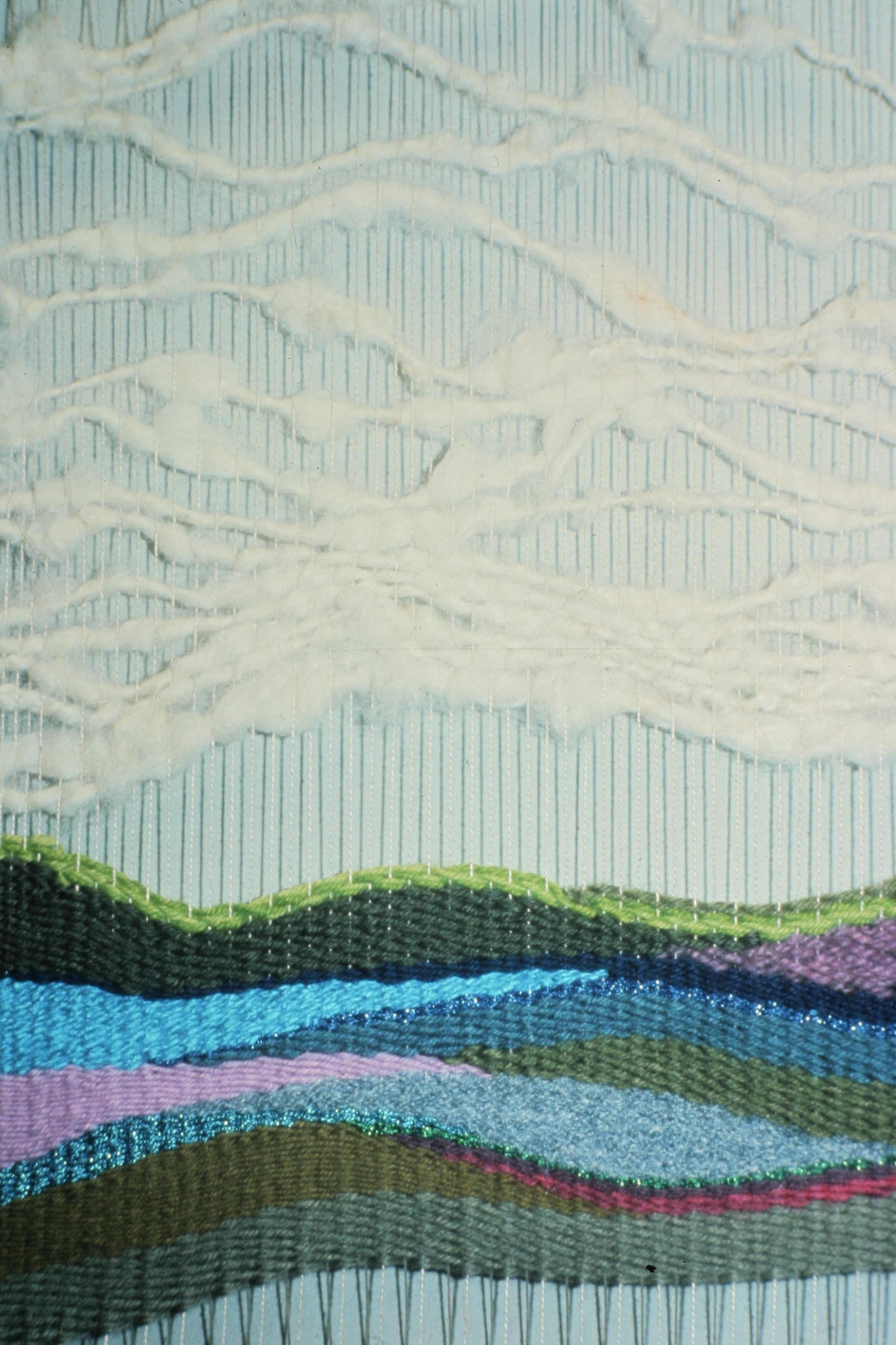 Ocean clouds Tapestry Size: 16″H x 10″W Materials: Hand spun wool, mixed fibers Share this: Click to share on X (Opens in new window) X Click to share on Facebook (Opens in new window) Facebook Like Loading...